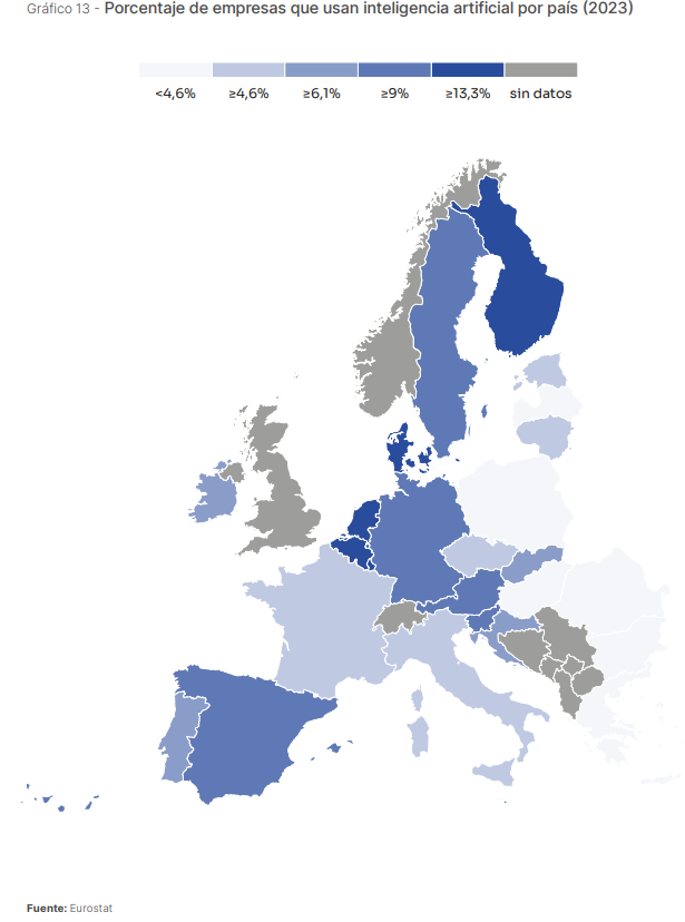 En España, la adopción llega al 11,4 % de las empresas, todavía por debajo de la media europea, pero con un
