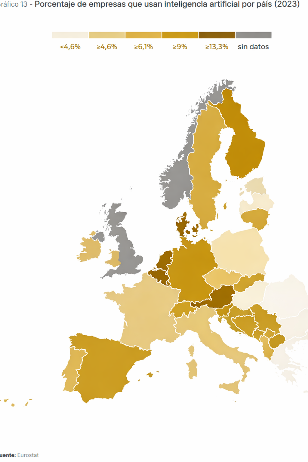 Dinamarca (24 %), Finlandia (22 %) y Países Bajos (20 %), líderes en la implantación de estas tecnologías.